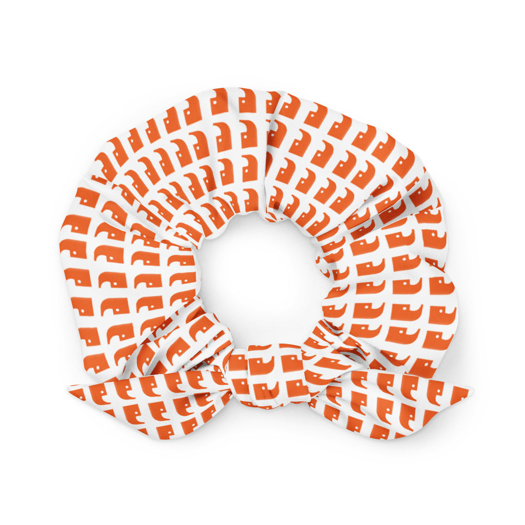 Add a pop of CPR style to your look! This scrunchie, patterned with our bold orange 'Quotie' mark, is the perfect mix of trendy and functional. Made from recycled materials with breathable, fast-drying stretch fabric, it’s comfy, durable, and versatile—whether you wear it in your hair or on your wrist. Plus, the removable bow detail lets you switch up the vibe. A must-have accessory for any CPR fan who loves a good finishing touch
