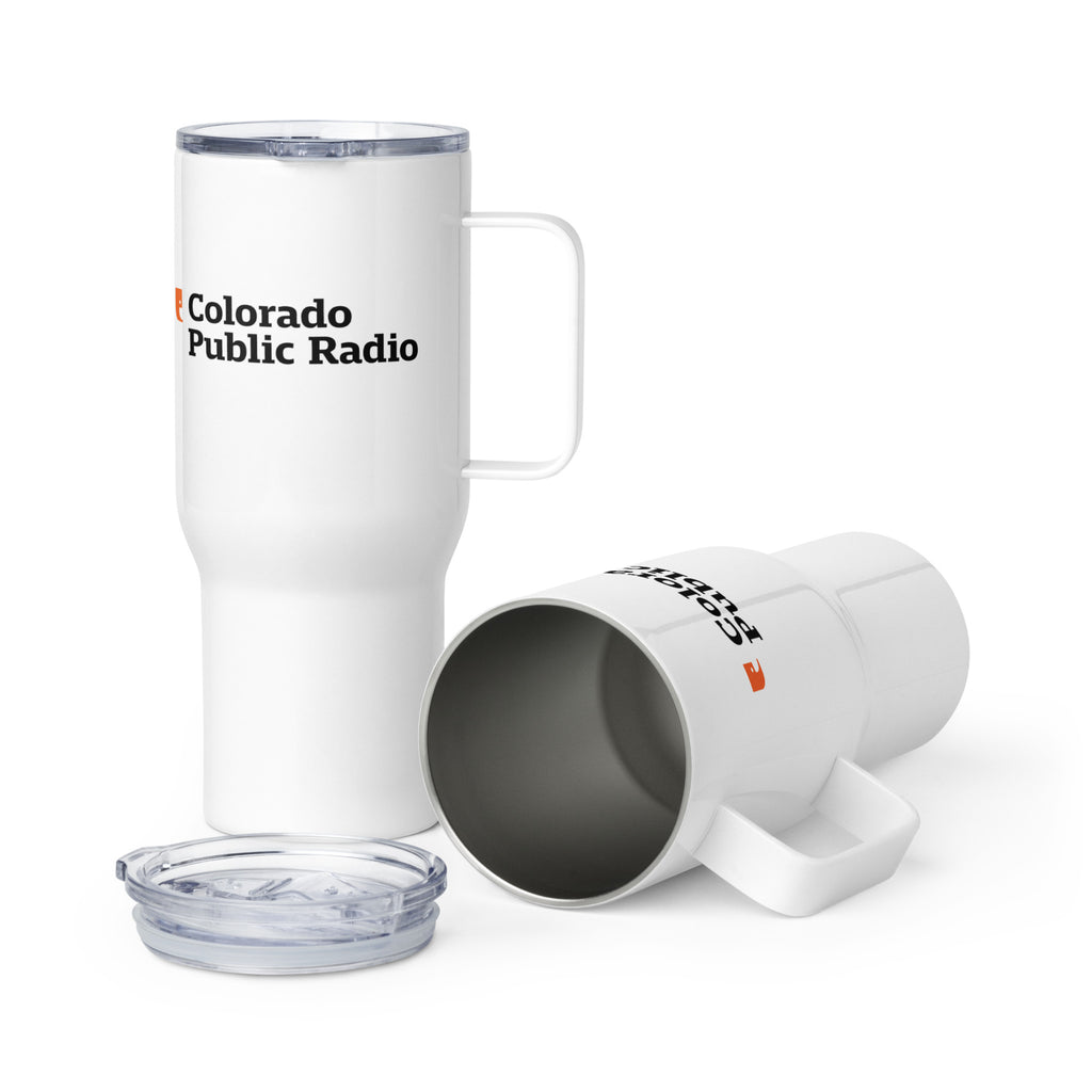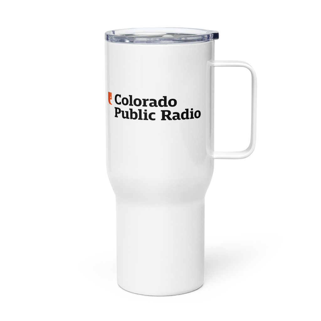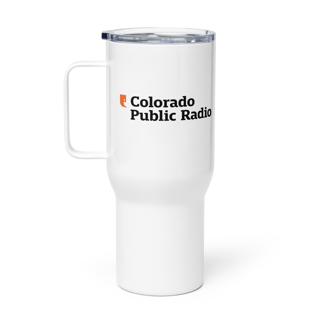 Take your public radio pride on the go. This sleek white travel tumbler, featuring the Colorado Public Radio logo, keeps your drink at the perfect temperature—whether it’s a morning coffee for your commute or tea for a long drive. Designed to fit most car cup holders, it’s durable, spill-resistant, and ready for wherever the day takes you. Stay fueled, stay informed.