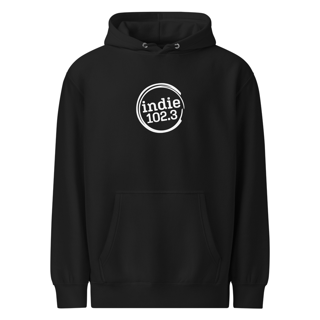 Your new favorite hoodie just dropped. This black unisex premium mid-weight pullover features the classic round Indie 102.3 logo front and center—simple, bold, and unmistakably indie. With a smooth cotton face, relaxed streetwear vibe, and seriously soft interior, it’s made for concerts, coffee runs, or cozy nights spinning your favorite tracks. Layer it up or wear it solo—either way, you’ll look effortlessly cool.